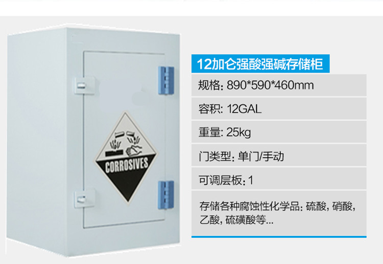 強酸堿儲存柜具有耐強酸、強堿與抗腐蝕。適用于實驗室各類化學品及器皿的安全存儲。